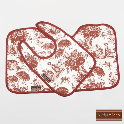 Best Bib & Burp Cloth- Burgundy Toile Gift Set Details