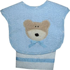 Spec Mullins Square Kids Blue Teddy Bear Bib & Burper Set Complete