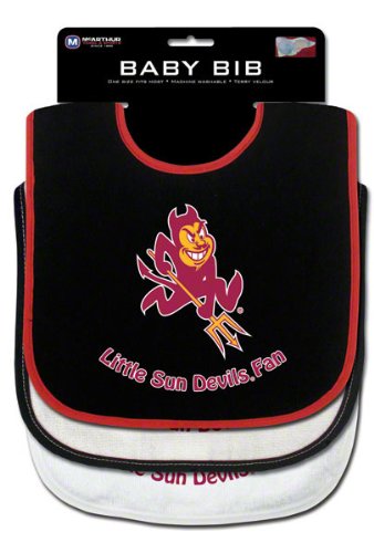 With this Arizona State Sun Devils Three Bib Set you can be sure to raise a true Arizona State Sun Devils fan. The set includes 3 different bibs so your young one can make it through the whole game. Features adjustable snap closure.